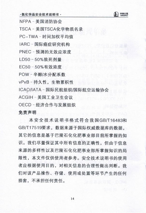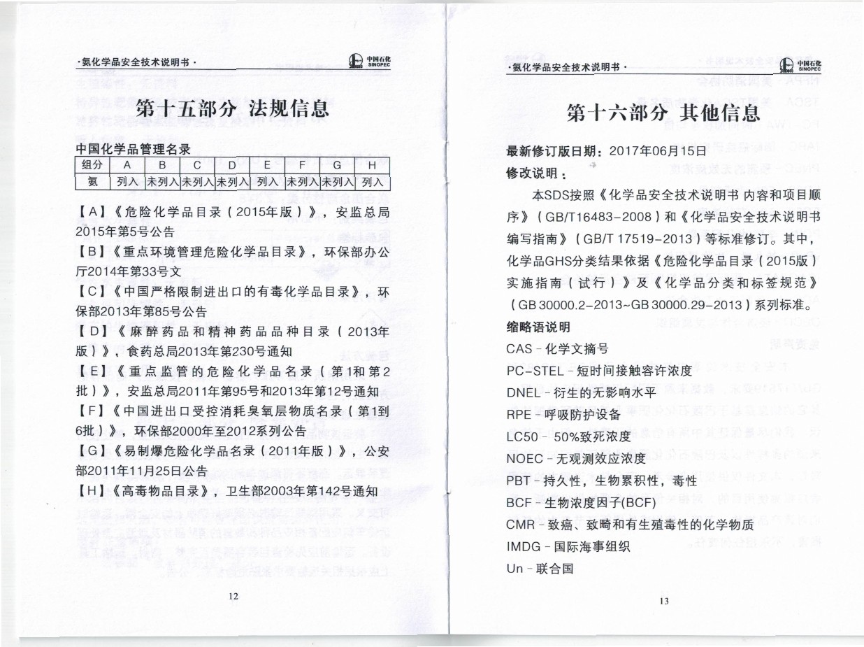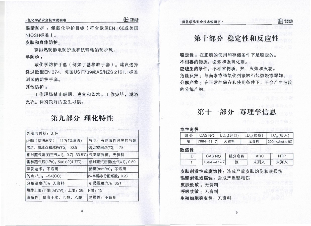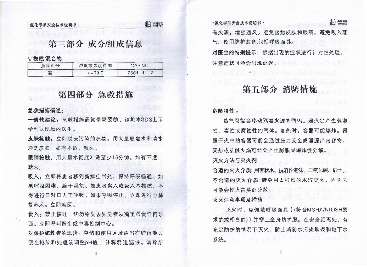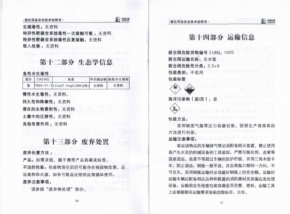 液氨產品說明書